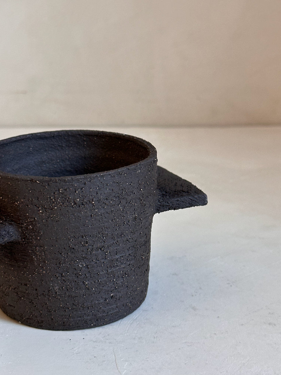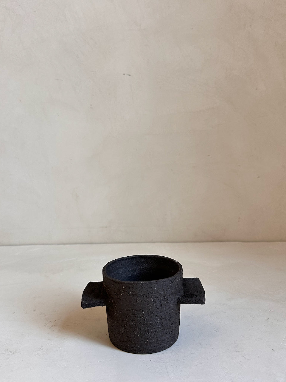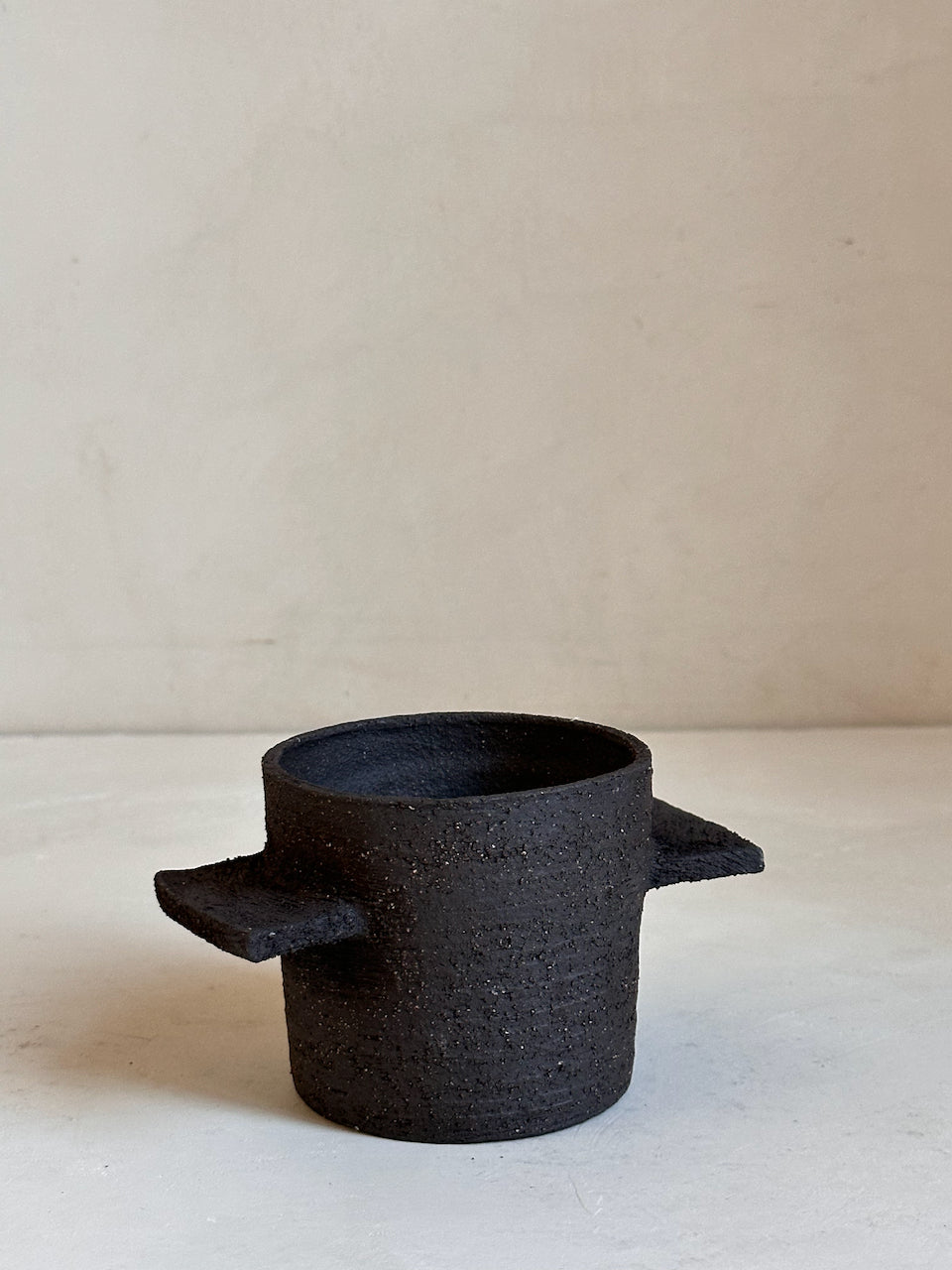 Their surfaces are left raw and tactile, revealing the natural grain of the clay and the traces of the making process. These are decorative objects, conceived as small architectural forms for a shelf, a console or a quiet corner of a room. They are not intended for water or flowers; instead they stand on their own as simple, grounded shapes that bring a sense of calm and materiality to a space.