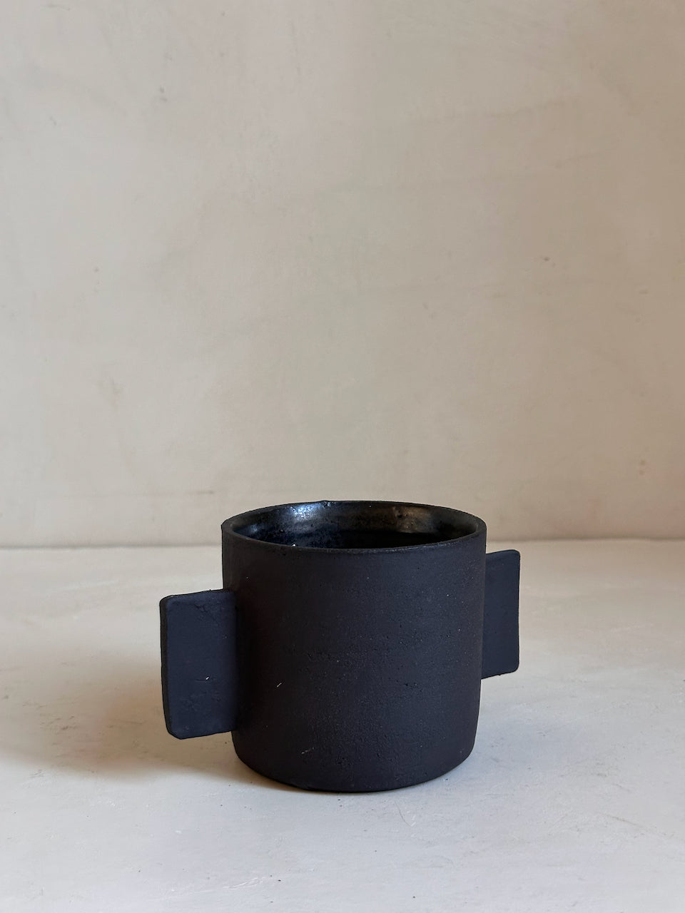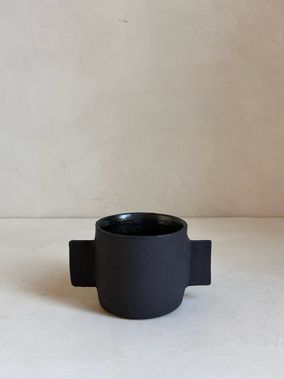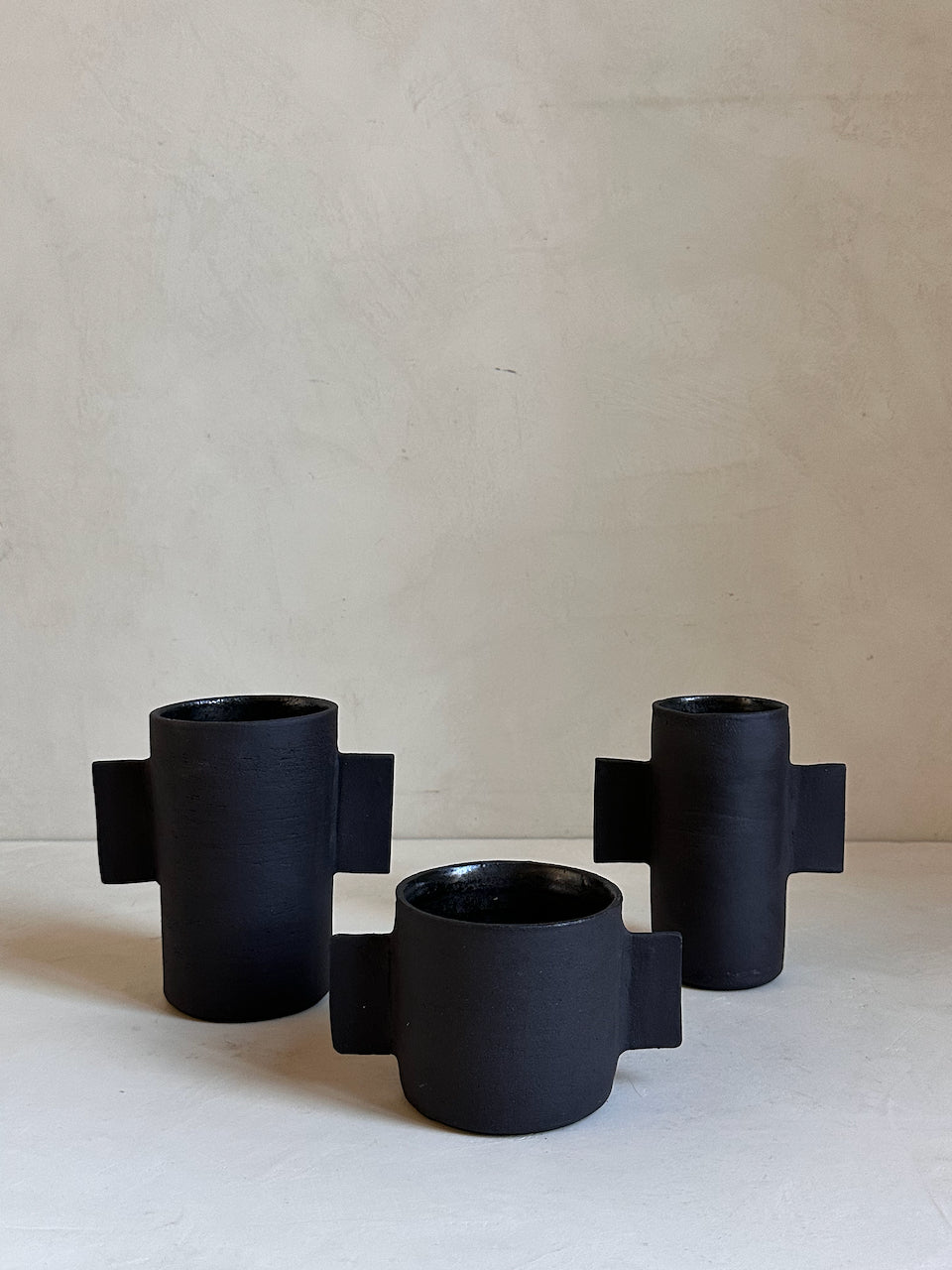 Their surfaces are left raw and tactile, revealing the natural grain of the clay and the traces of the making process. These are decorative objects, conceived as small architectural forms for a shelf, a console or a quiet corner of a room. They are not intended for water or flowers; instead they stand on their own as simple, grounded shapes that bring a sense of calm and materiality to a space.