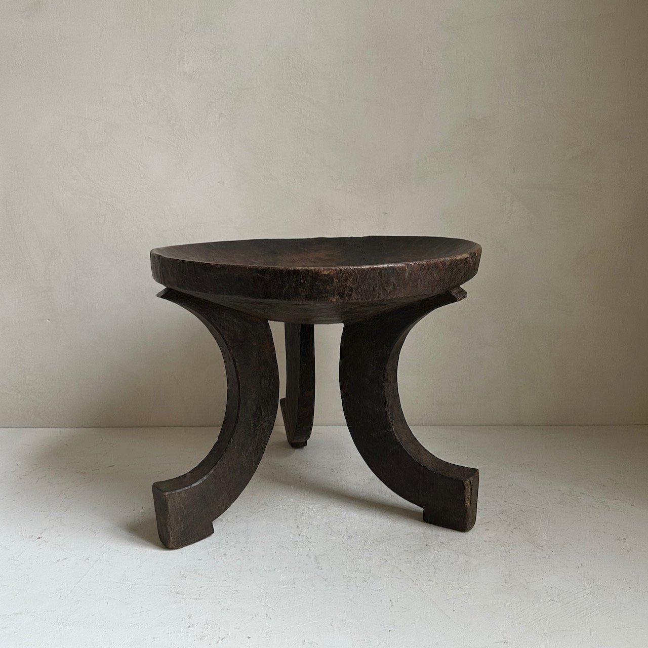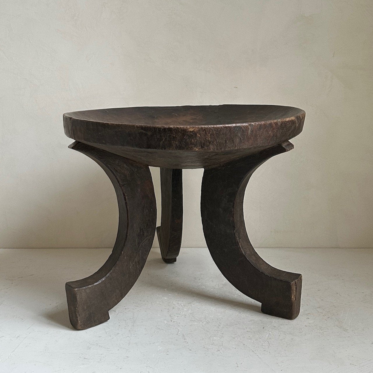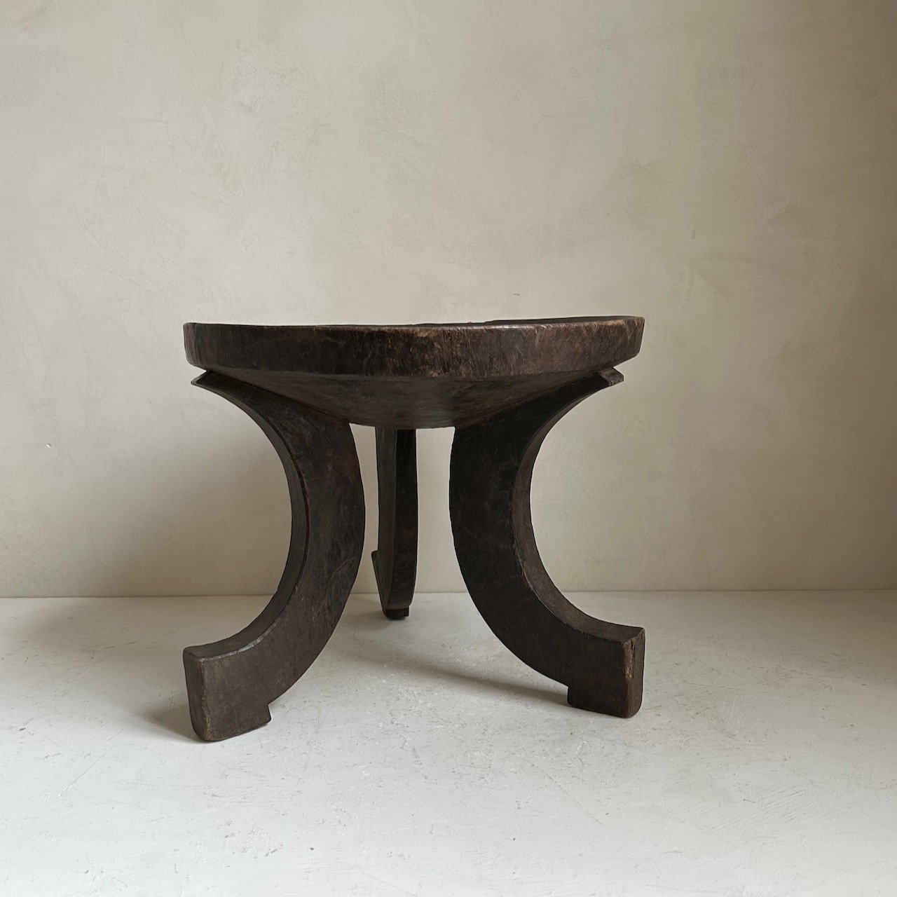 Antique Oromo stool from Ethiopia. Carved in one piece of indigenous hardwood. Dates from the early 20th Century. Weathered patina on wood.