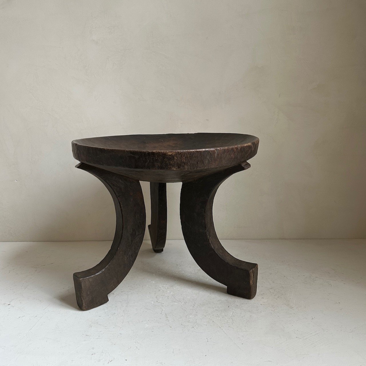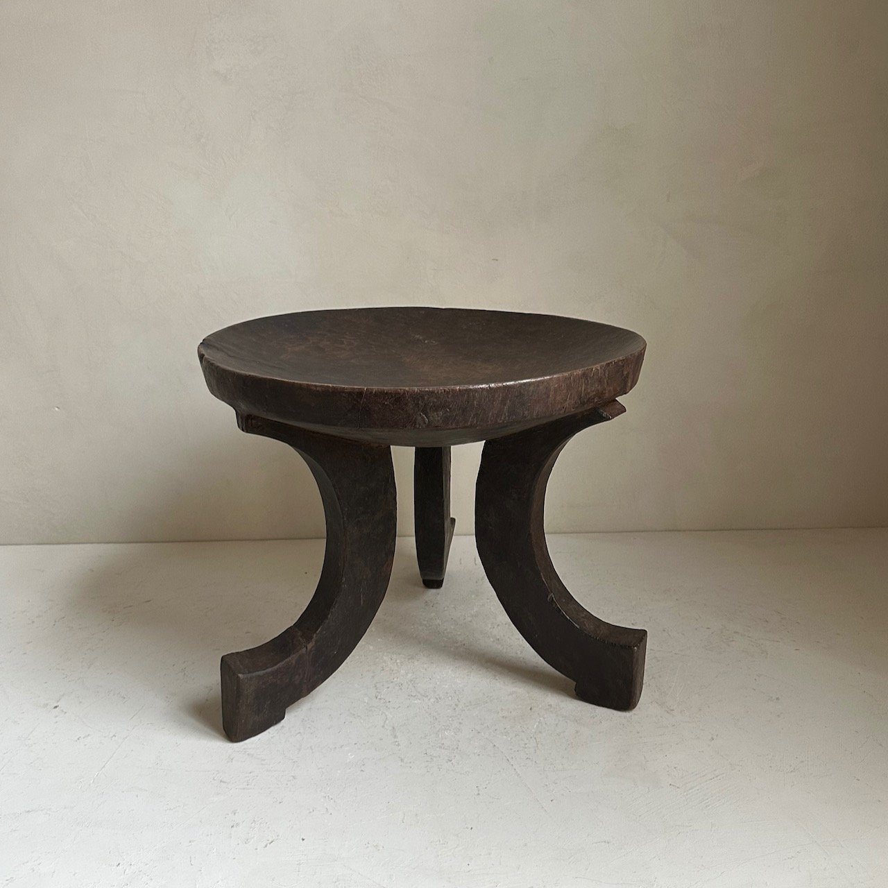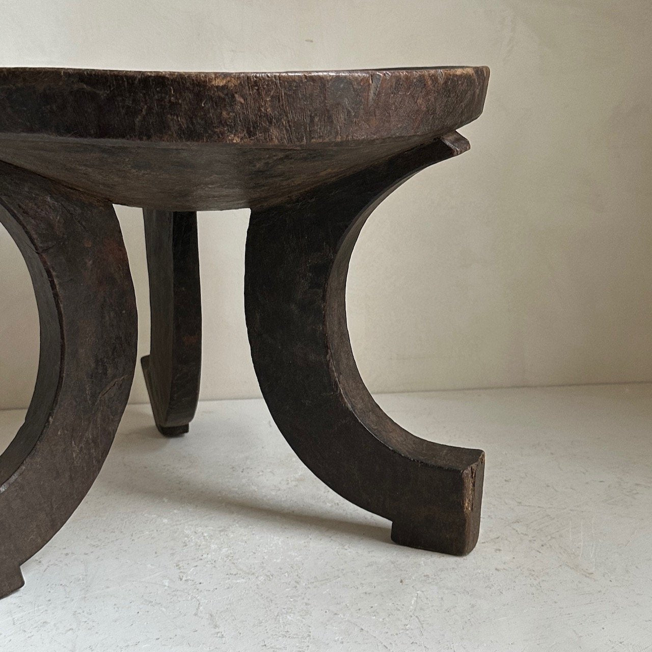 Antique Oromo stool from Ethiopia. Carved in one piece of indigenous hardwood. Dates from the early 20th Century. Weathered patina on wood.