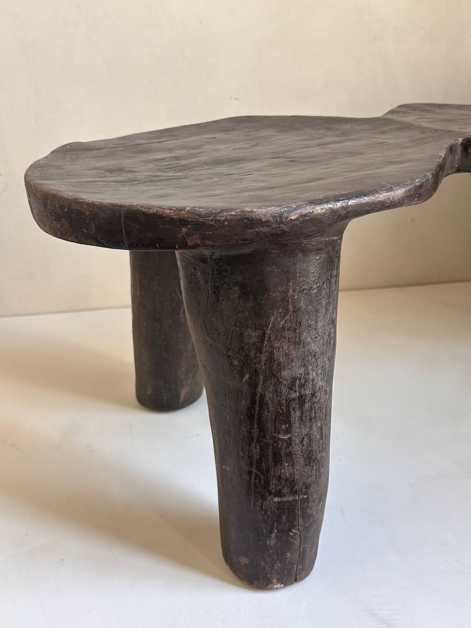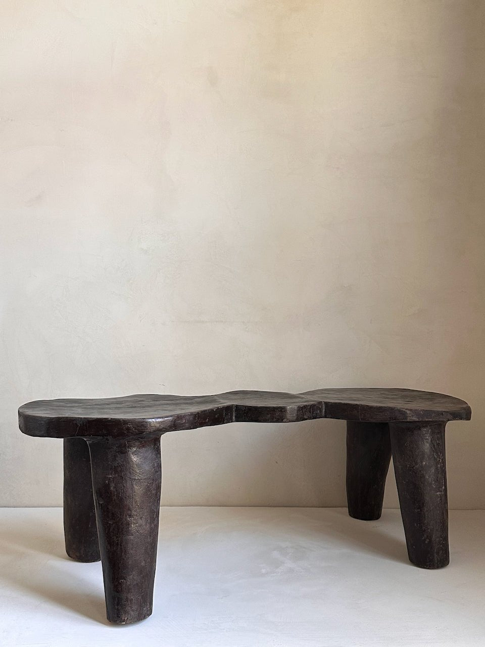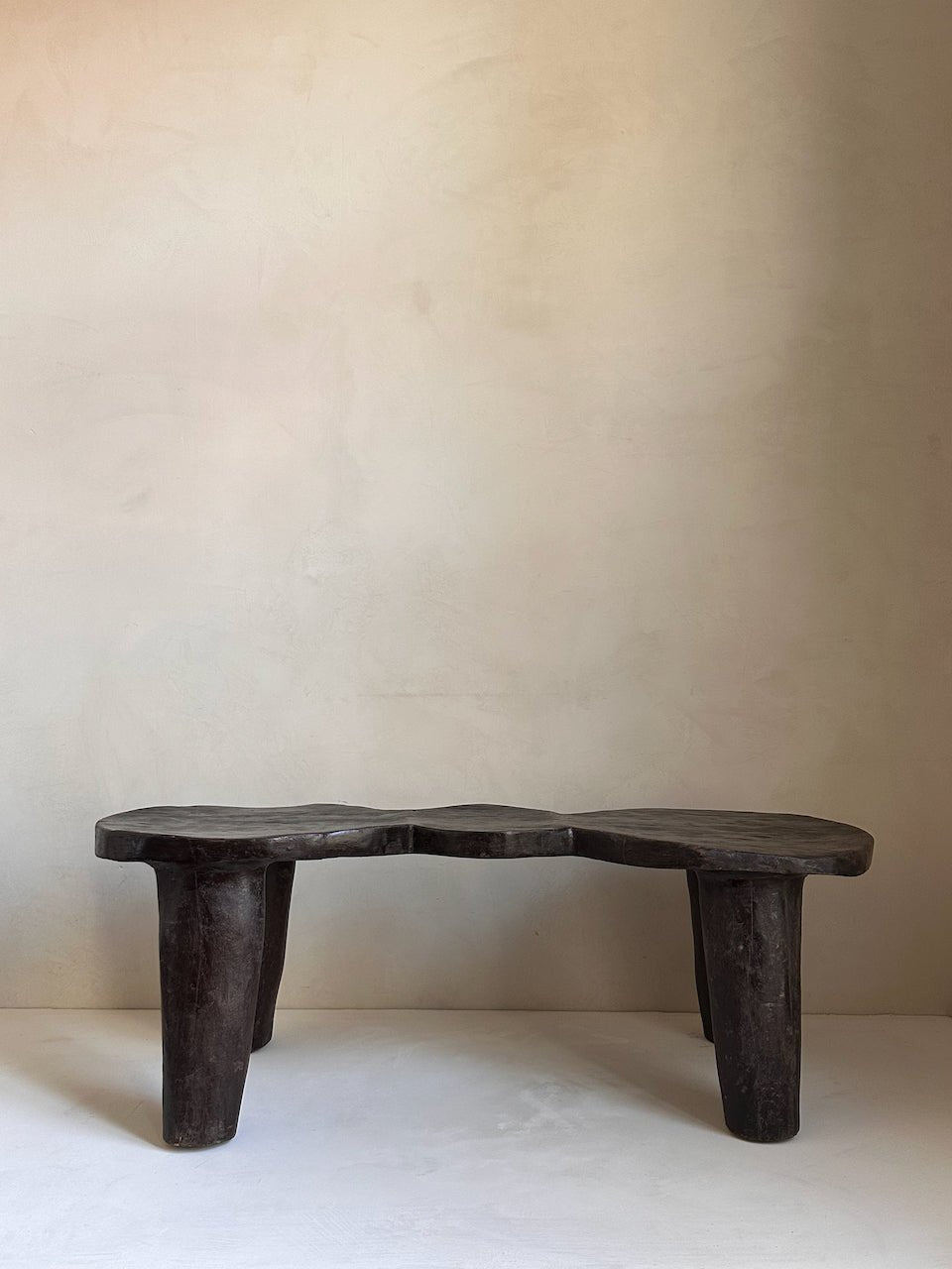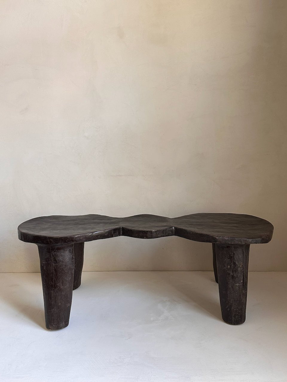 This unique bench comes from the Jimma region of Ethiopia and is beautifully hand-carved from a single piece of wood. A one-of-a-kind piece that reflects traditional craftsmanship and cultural heritage.
