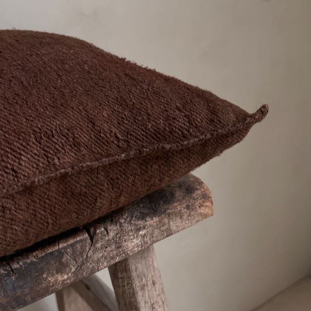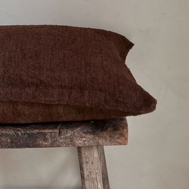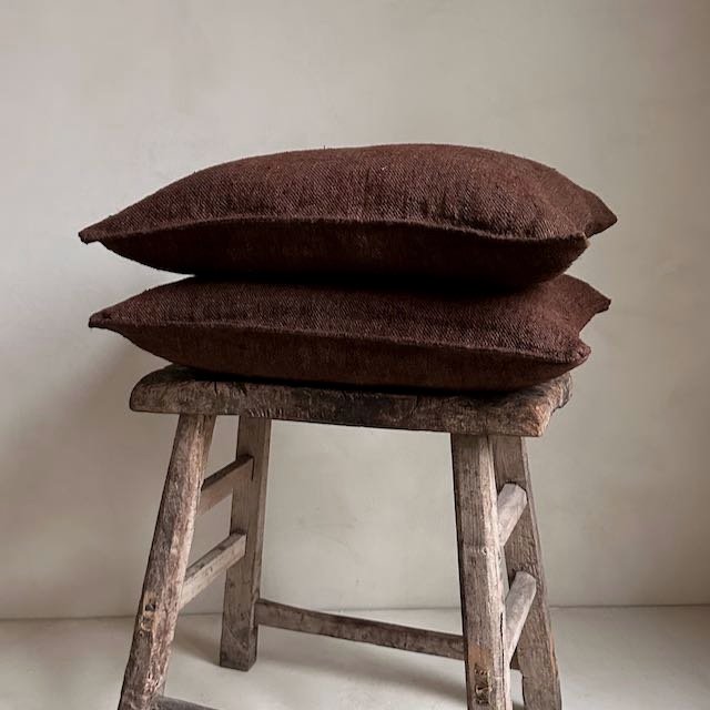 Up cycled vintage hemp cushion.. Series of one available. Pricing indicative of one cushion.