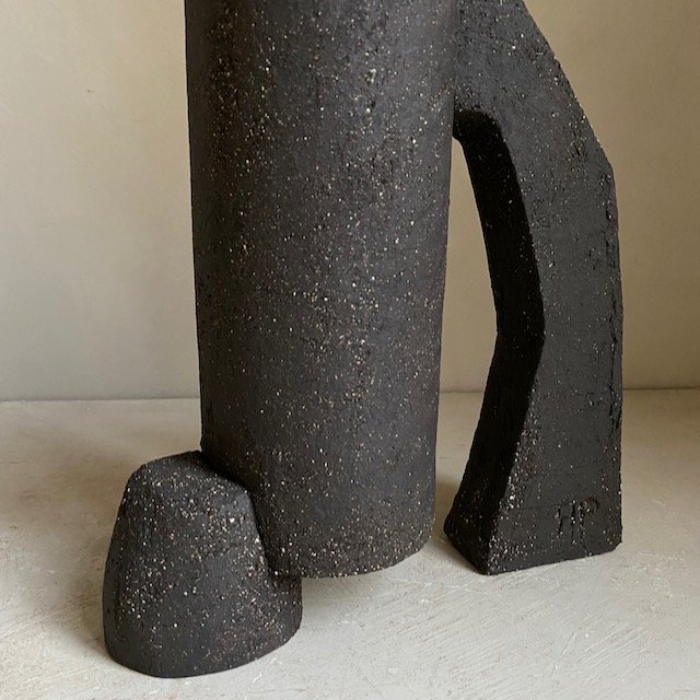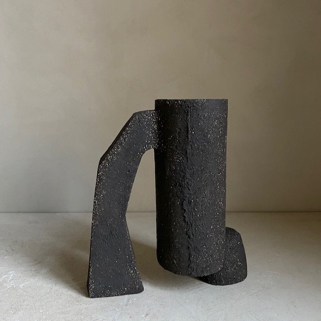 Pascale works with white and black clay, in their raw state with stone effects, giving them a stony rendering and feel. She is intrigued by the shape of the void and gives as much importance to