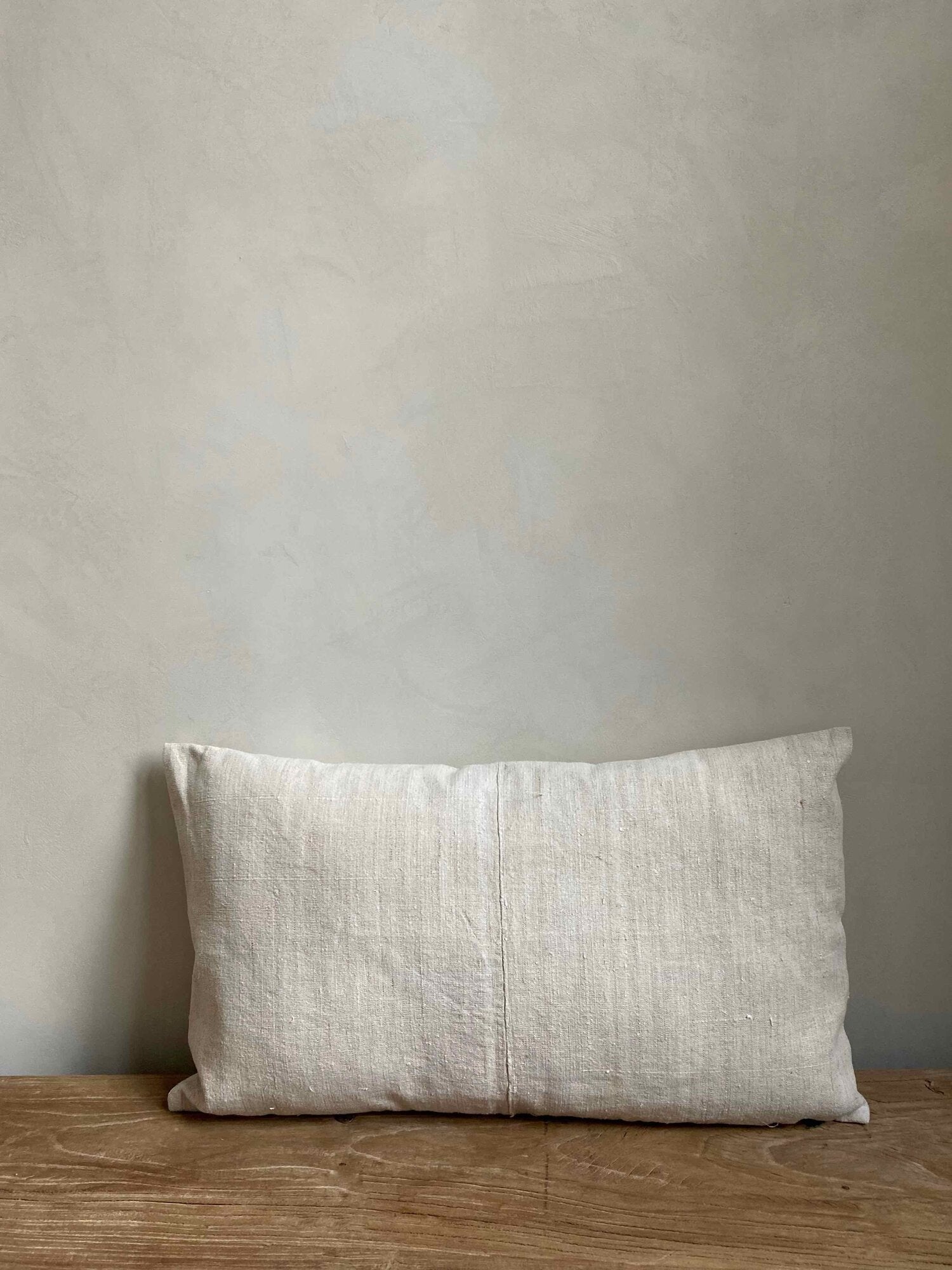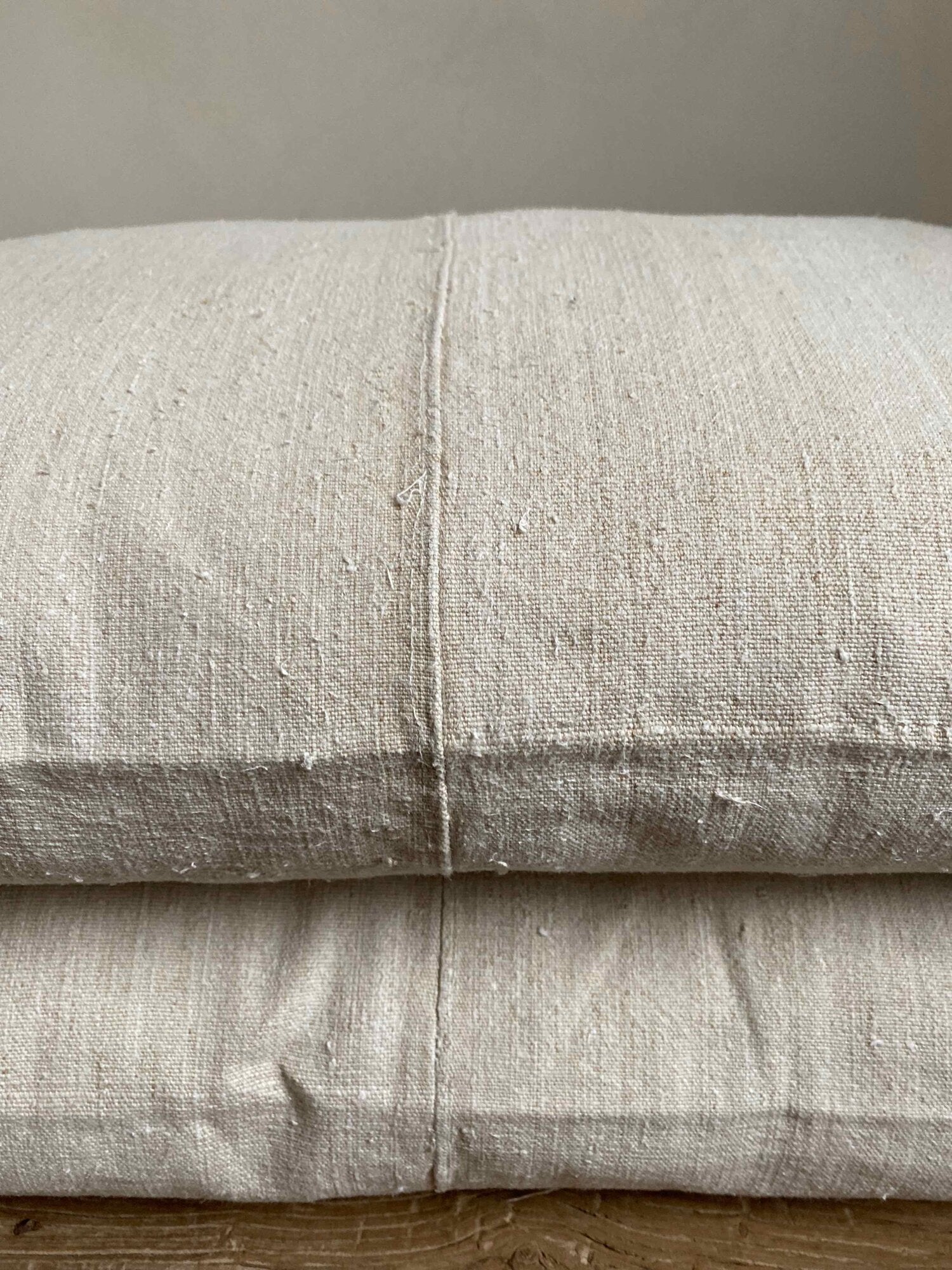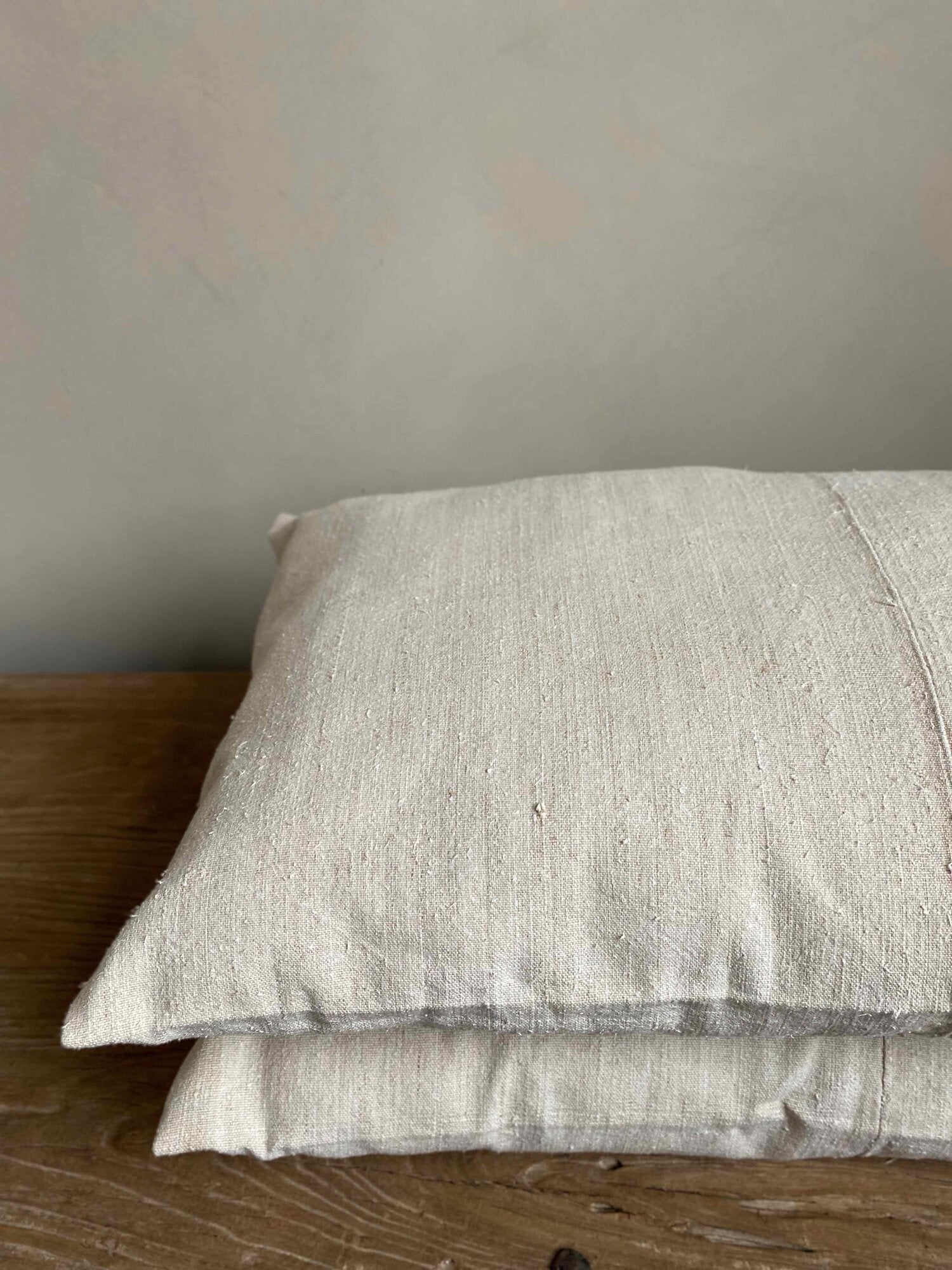 Up cycled vintage hemp cushion with central stitching. Series of two available. Pricing indicative of one cushion