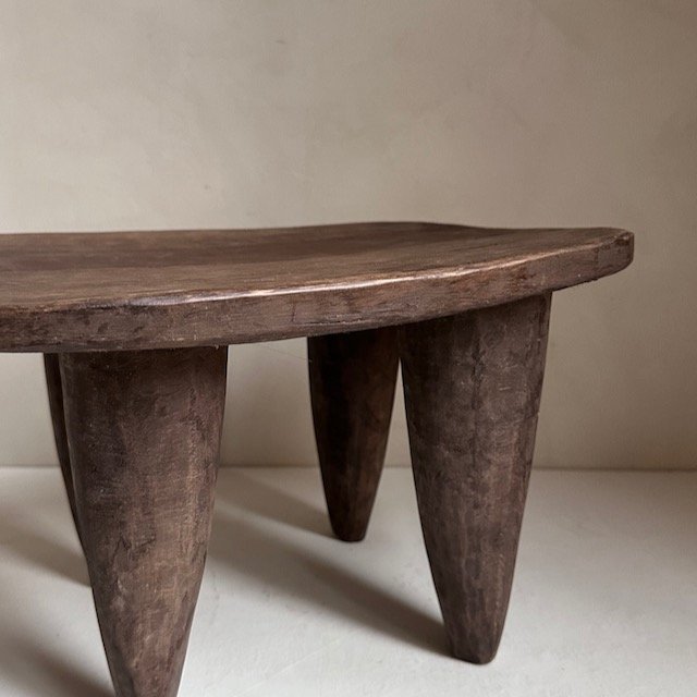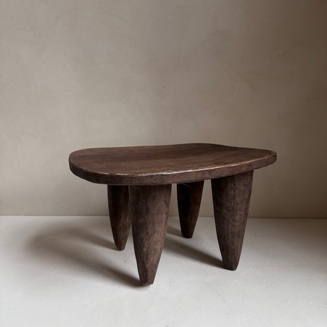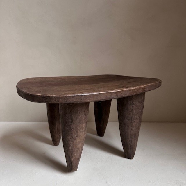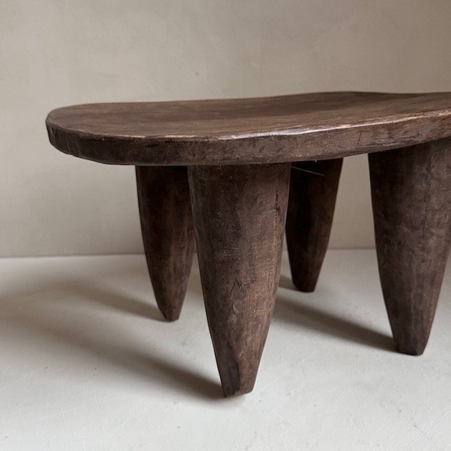 Antique Senufo stool from the Ivory Coast. Carved in one piece of indigenous hardwood. Beautiful curved surface and tapered legs. Weathered patina on wood.