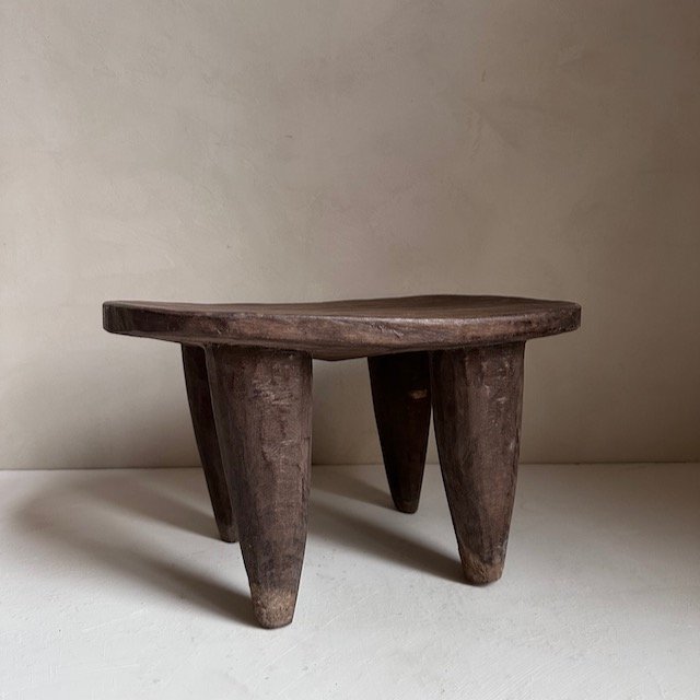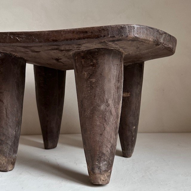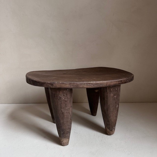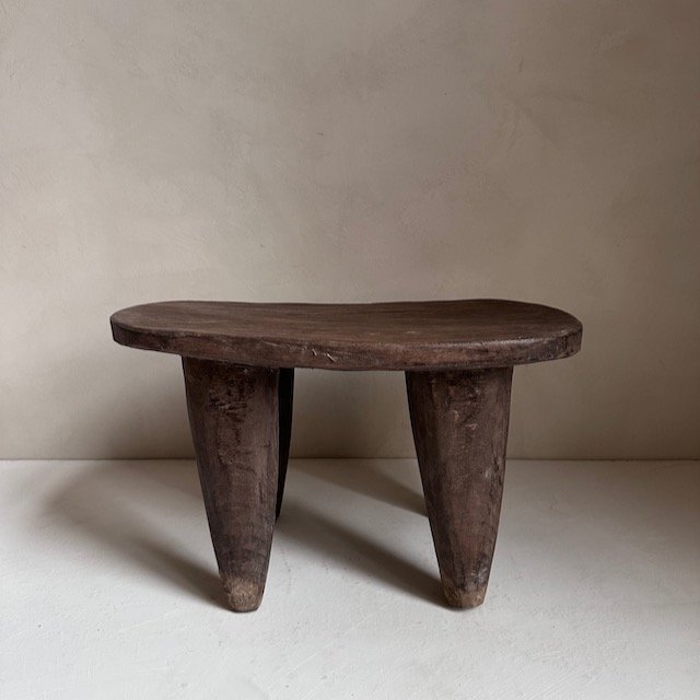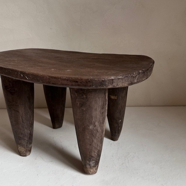 Antique Senufo stool from the Ivory Coast. Carved in one piece of indigenous hardwood. Beautiful curved surface and tapered legs. Weathered patina on wood.