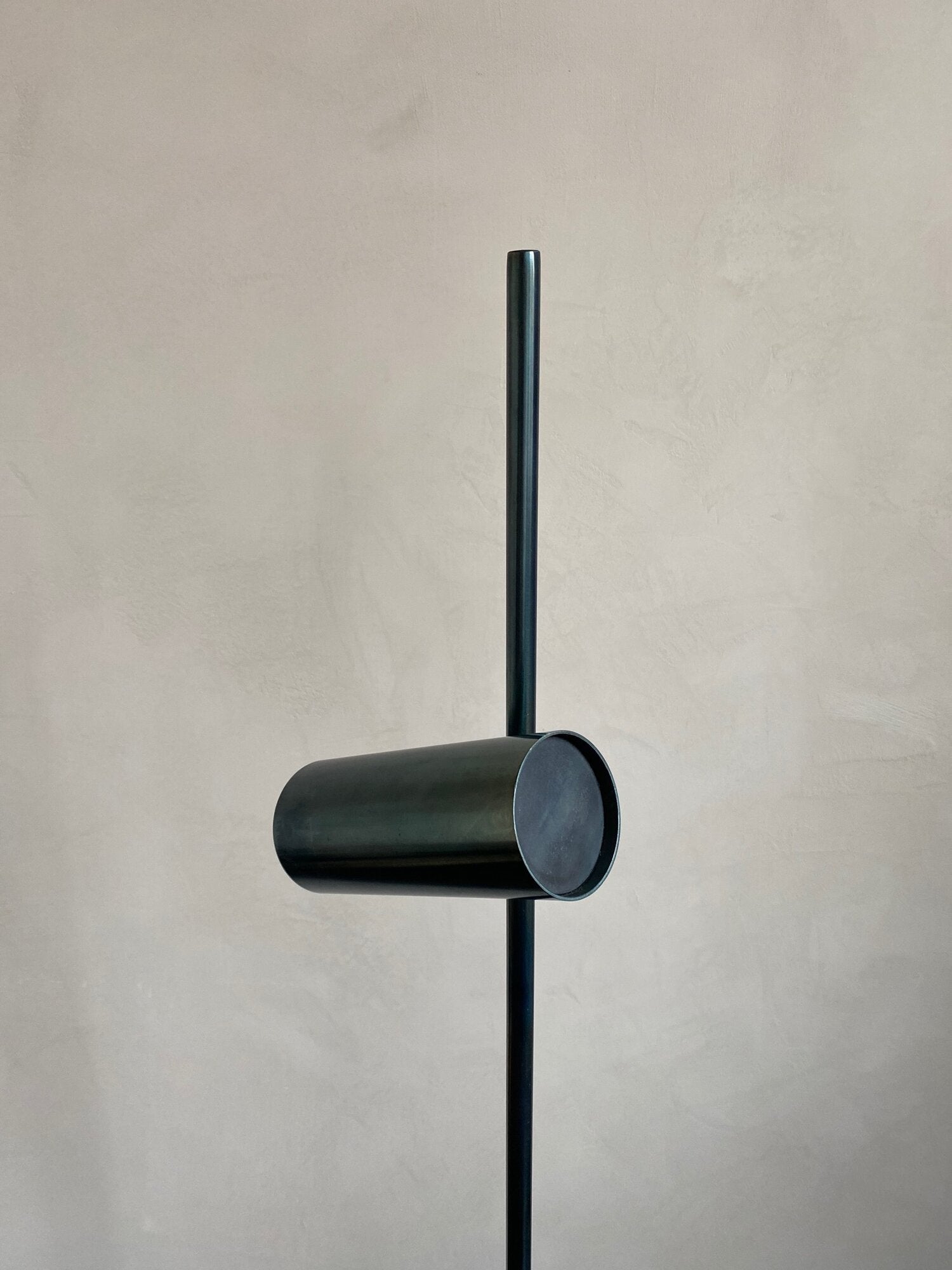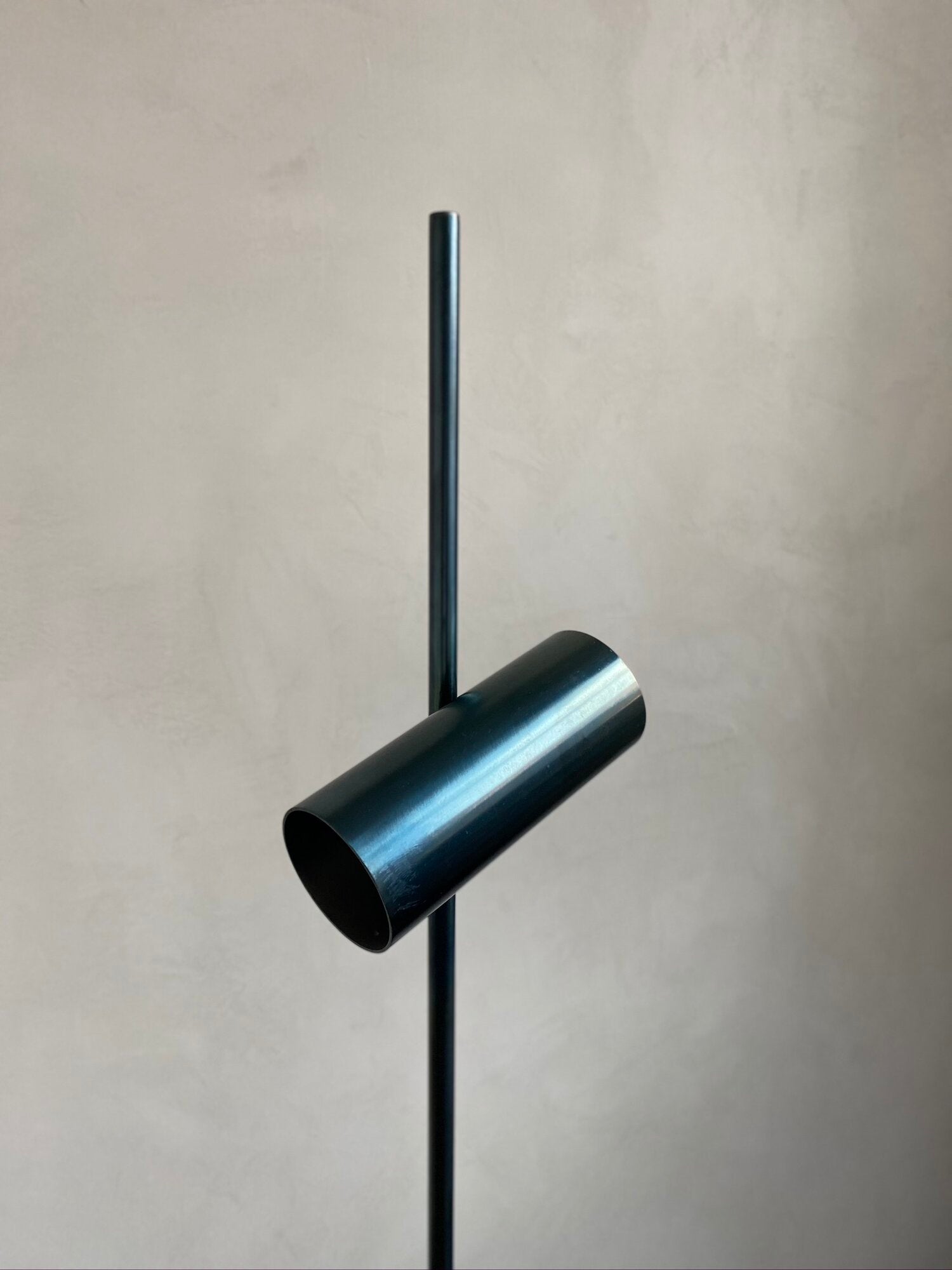 This floor lamp designed by Koen van Guijze is made entirely of blue steel and acquires a beautiful patina overtime. With a height of 140 cm it makes for the perfect reading lamp.