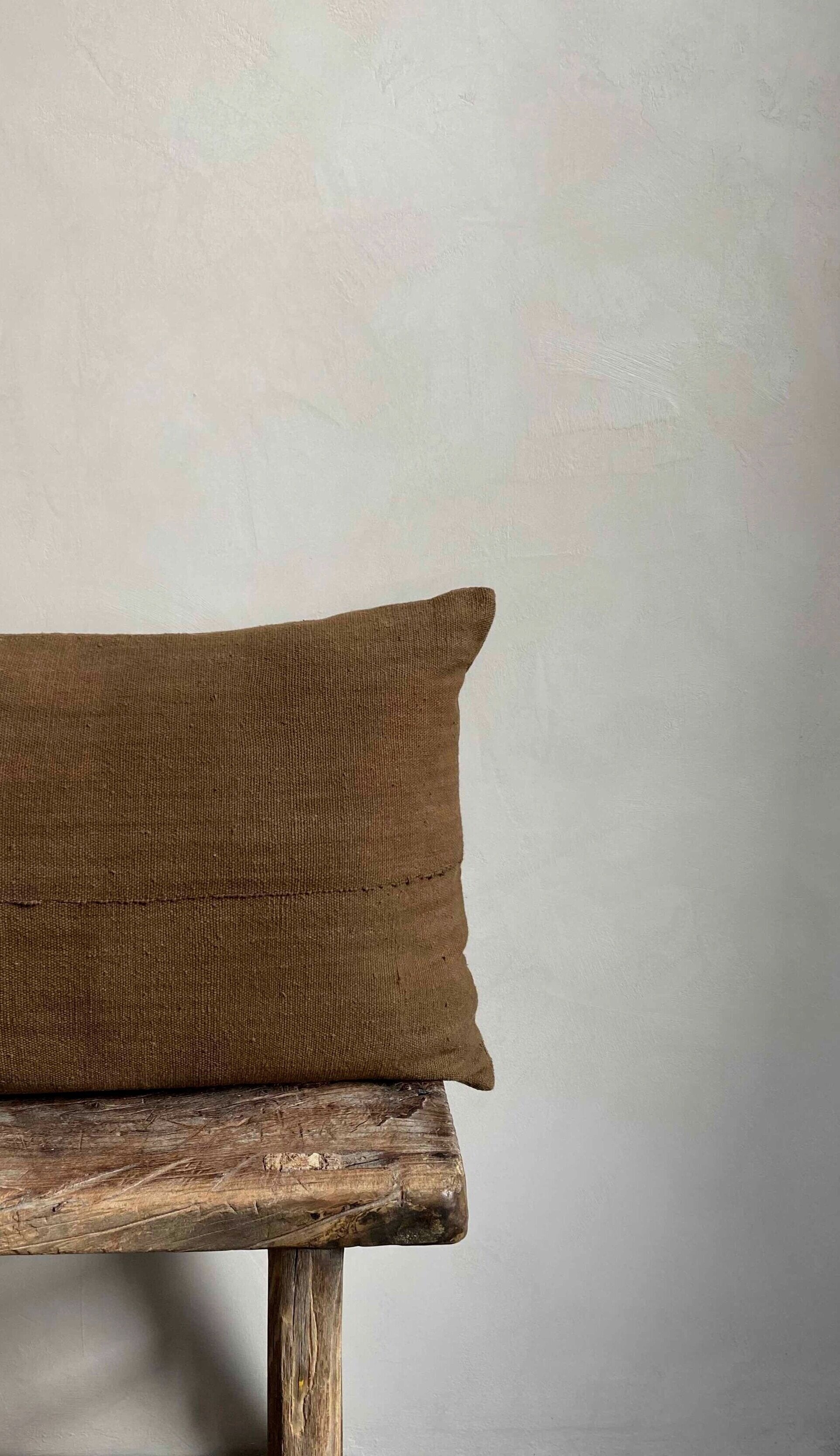 This cushion is made from hand spun artisanal cotton bands which are hand woven on traditional looms in rural villages in West Africa.