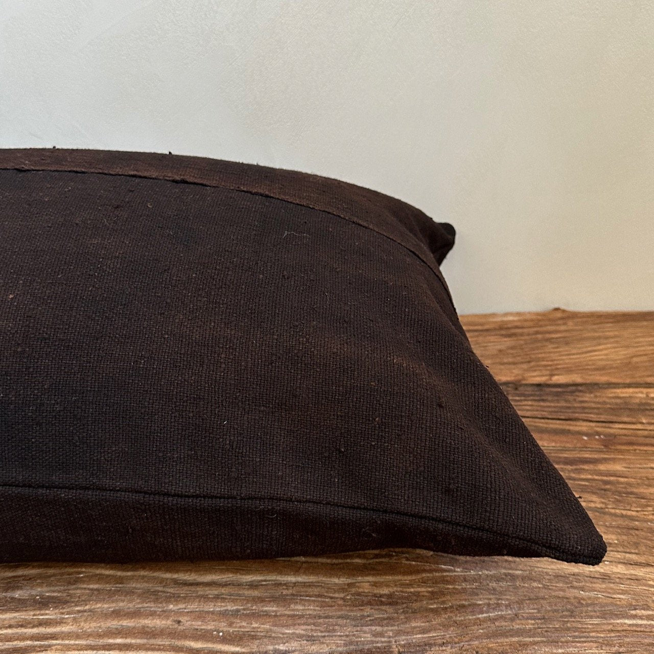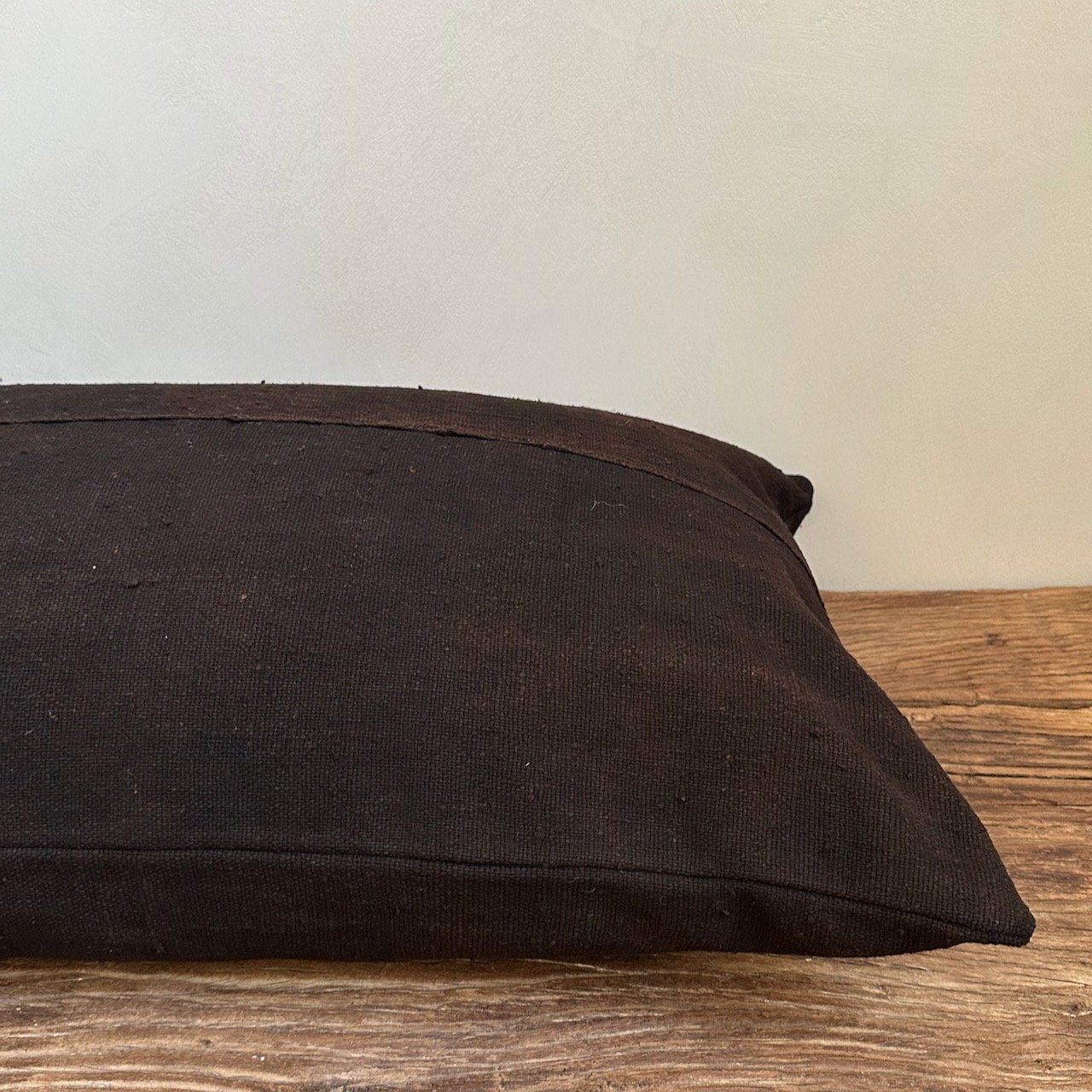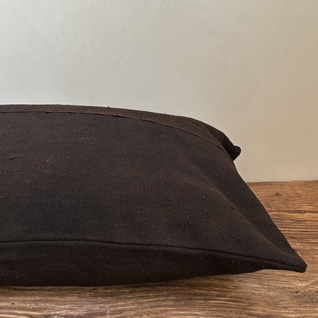 This cushion is made from hand spun artisanal cotton bands which are hand woven on traditional looms in rural villages in West Africa.