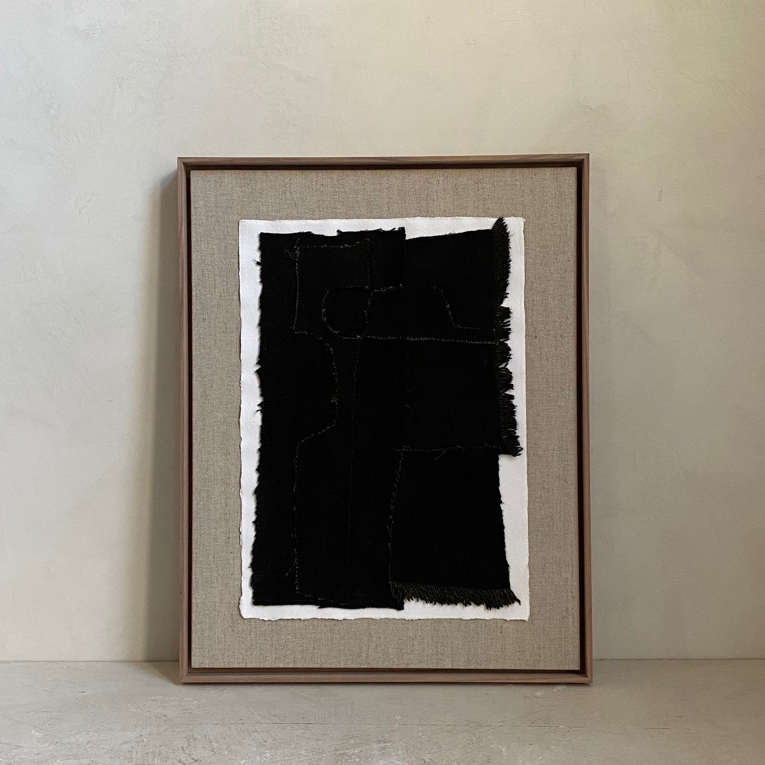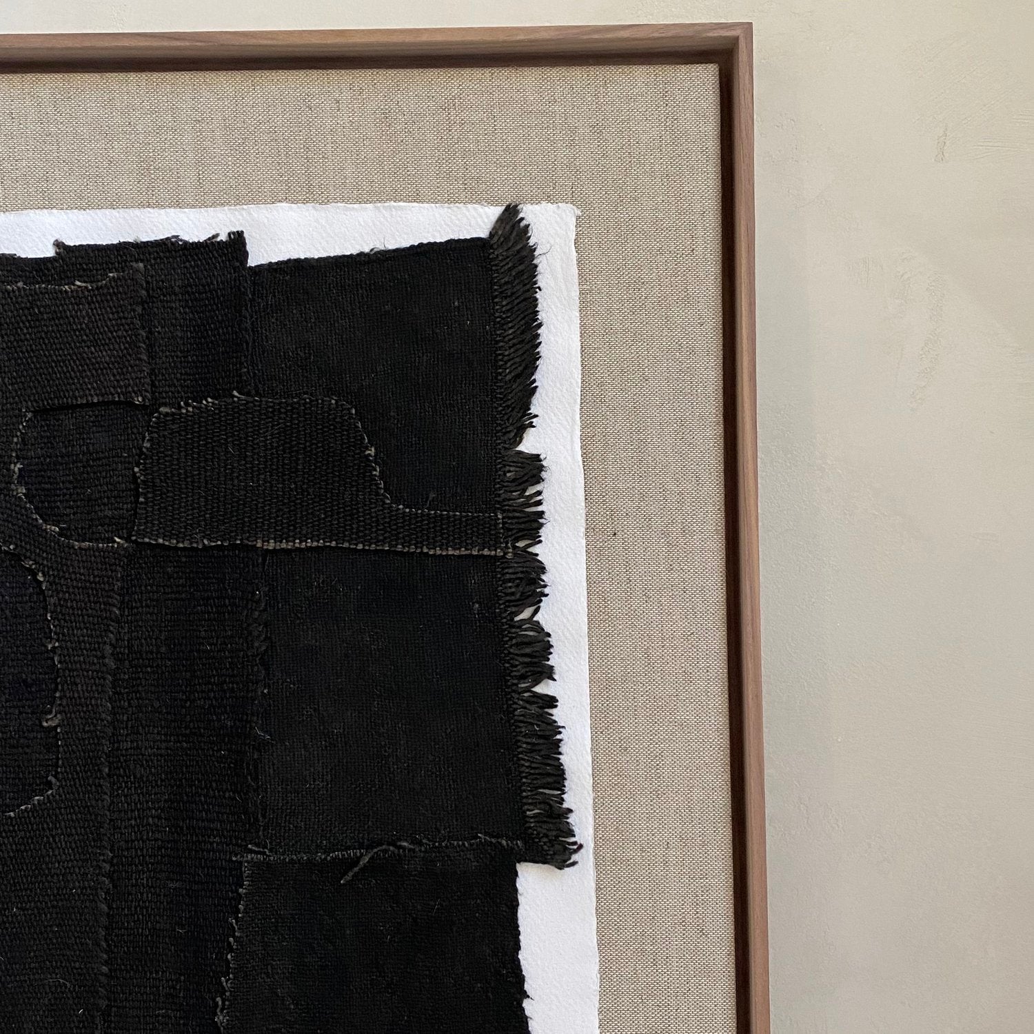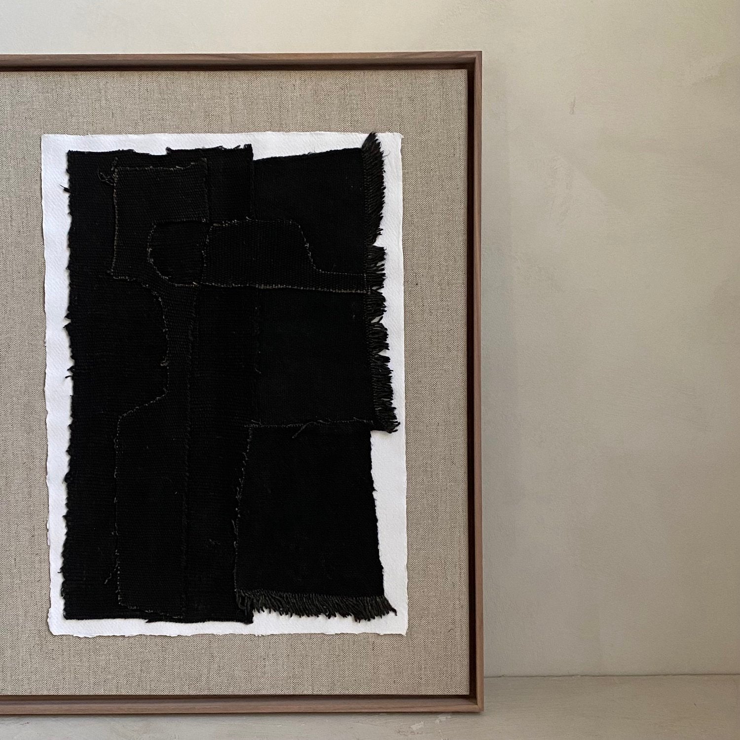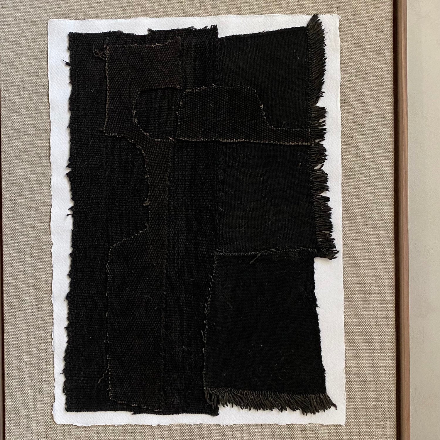 Materials: recycled paper, hand woven cotton, walnut frame with linen backing