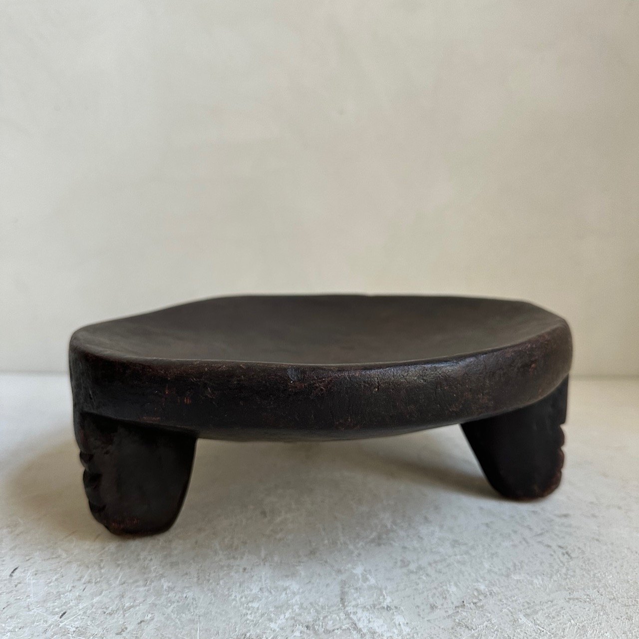 This wooden tray is from Ethiopia and has a weathered beautiful dark patina. These trays are traditionally used for a variety of functions from preparing food to serving and storage. The tray is hand carved in a durable hardwood to ensure long usage.